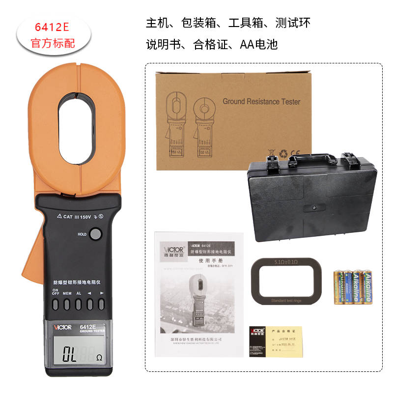 VICTOR 6412E鉗形接地電阻儀表廣泛應用于電力、電信、氣象、油田、建筑及工業(yè)電氣設備等的接地電阻測量、回路電阻測量。在測量有回路的接地系統(tǒng)時,不需斷開接地引下線,不需輔助電極,安全快速。能測量出用傳統(tǒng)方法無法測量的接地故障,能應用于傳統(tǒng)方法無法測量的場合,因為鉗形接地電阻儀測量的是接地體電阻和接地引線電阻的綜合值。