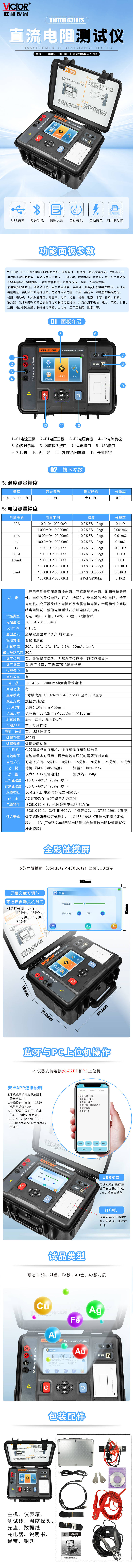 VICTOR 6310ES 直流電阻測(cè)試儀又名變壓器直流電阻測(cè)試儀、直流電阻快速測(cè)試儀、接地導(dǎo)通測(cè)試儀,采用微處理機(jī)技術(shù),四線法測(cè)試,安全精密可靠。