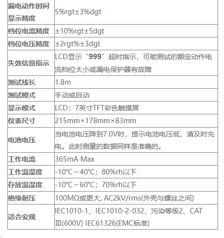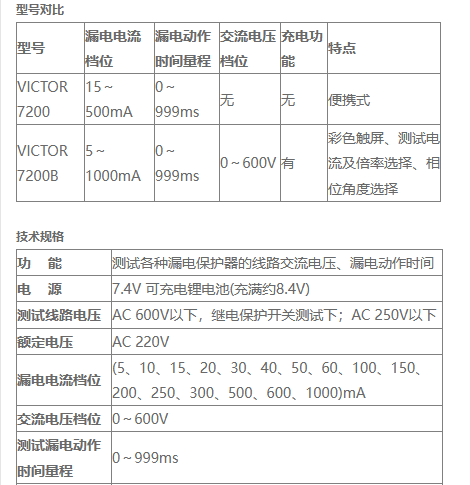 VICTOR 7200B漏電保護器測試儀專為現(xiàn)場在線測試各種漏電保護器的線路交流電壓、漏電動作電流、漏電不動作電流、以及漏電動作時間,測試電流從5~1000mA分十六檔(5、10、15、20、30、40、50、60、100、150、200、250、300、500、600、1000mA),測試漏電流動作時間量程為0~999ms,采用854×480全彩觸摸LCD顯示,具有電池電量顯示、設定故障電壓指示、背光亮度調(diào)節(jié)、內(nèi)設接線指導圖,方便直觀,操作簡便。儀表精度高、體積小、重量輕、外觀精致,便于攜帶,是各種漏電保護器現(xiàn)場或室內(nèi)檢測的理想工具。