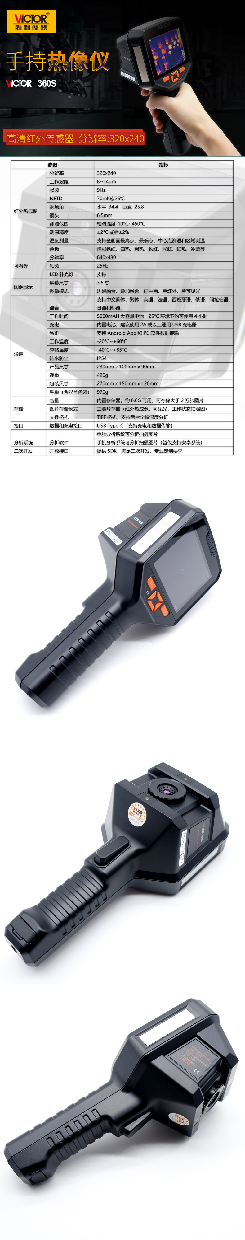 產(chǎn)品型號:VICTOR 360S操作方式:產(chǎn)品名稱:紅外熱成像儀