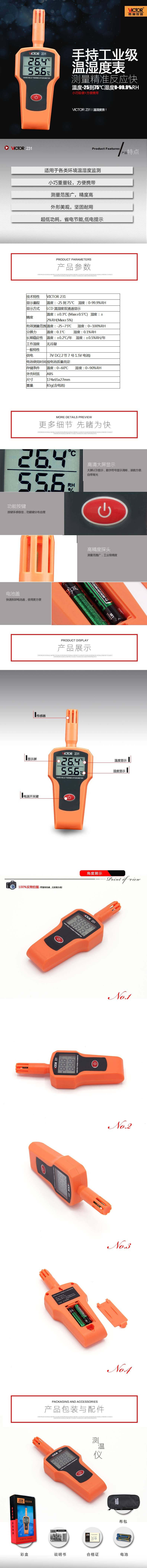 VICTOR 231手持式溫濕度計(jì)(工業(yè)級)