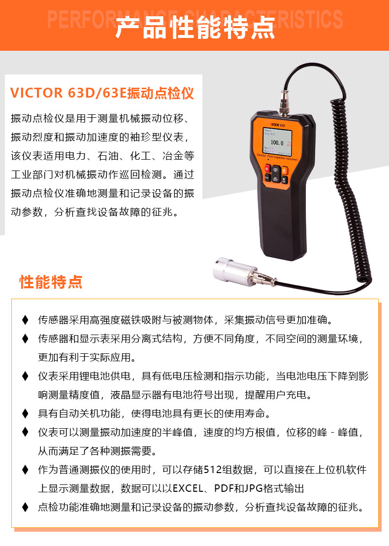產(chǎn)品型號(hào):VICTOR 63D 63E測(cè)振儀產(chǎn)品名稱:VICTOR 63D 63E測(cè)振儀 帶通信接口