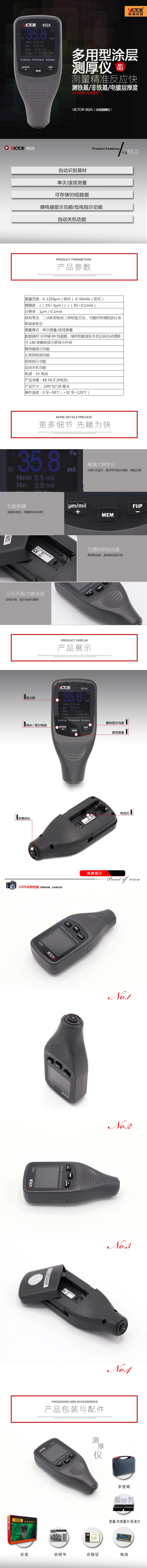 產(chǎn)品型號(hào):VICTOR852A 操作方式:手動(dòng)量程產(chǎn)品名稱:涂層測(cè)厚儀 VICTOR 852A 顯示位數(shù):3 1 2位詳細(xì)介紹:測(cè)量范圍:0-1250μm(