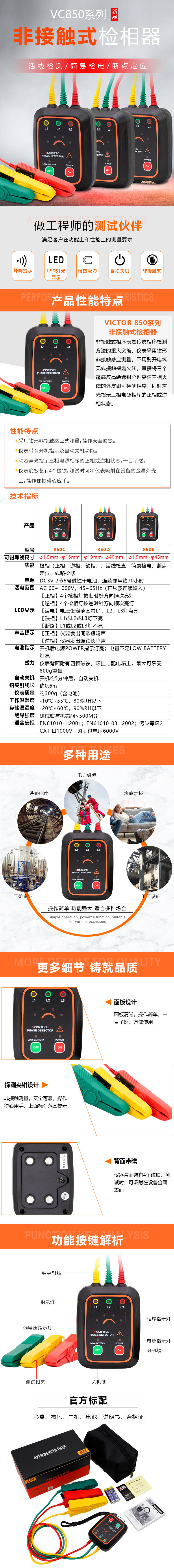 產(chǎn)品型號(hào):VICTOR850C 操作方式:產(chǎn)品名稱:非接觸相序表 GET QUOTE