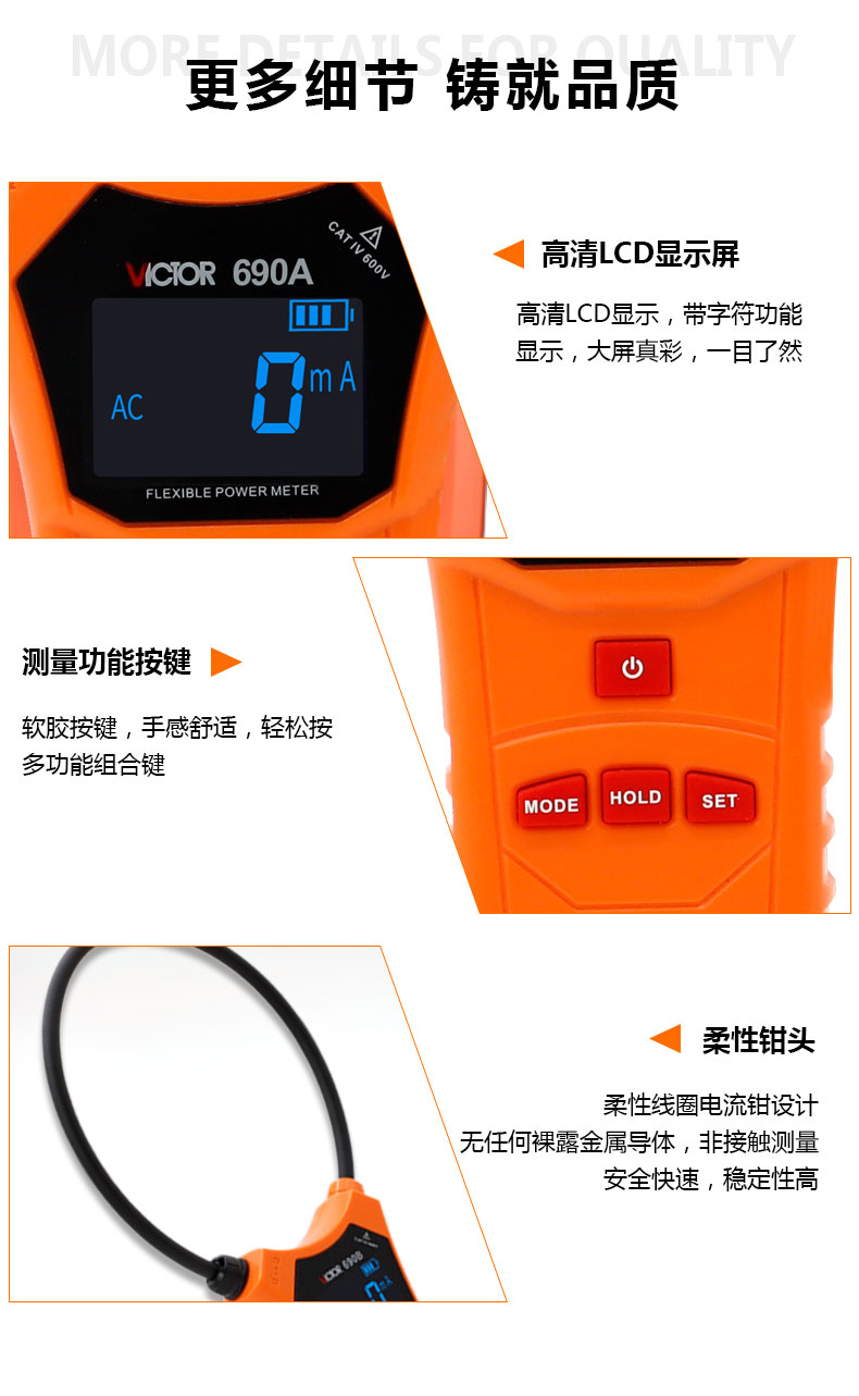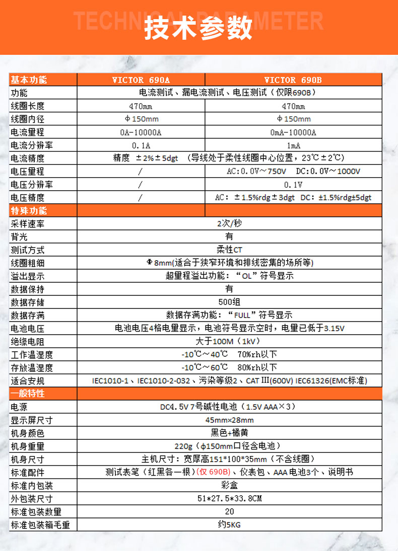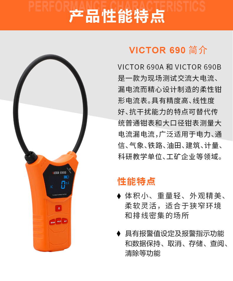產(chǎn)品型號(hào):VICTOR 690A 690B產(chǎn)品名稱:VICTOR 690A 690B柔性線圈大電流漏電流鉗表