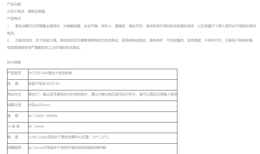 VICTOR 690柔性線圈大電流漏電流鉗表