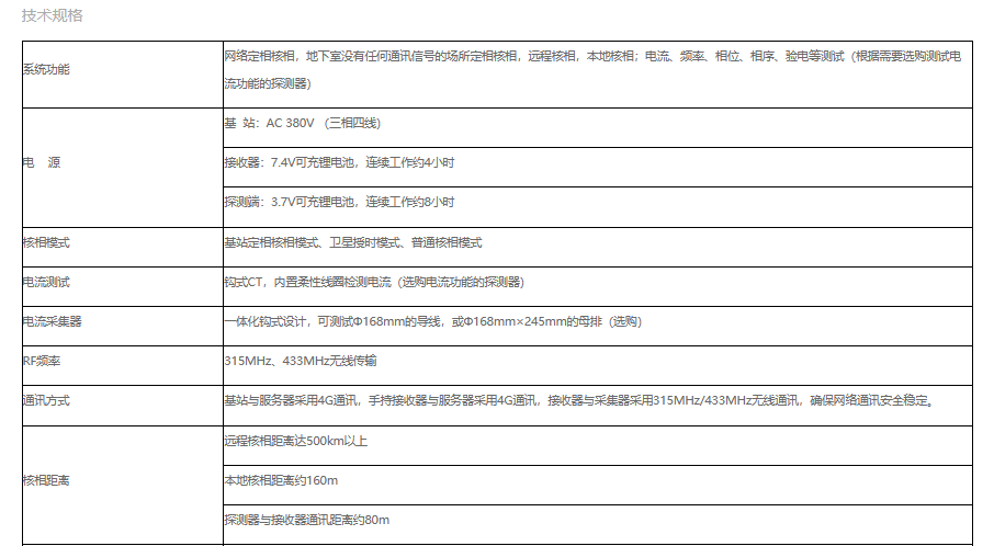 空曠地面普通核相距離可達160m,衛(wèi)星授時核相距離大于500km,能對1V~550kV的電壓線路全智能核相,也可用于高壓線路和完全密封的環(huán)網(wǎng)柜低壓感應點核相,其中35kV以下的裸導線探測器可以直接接觸核相,35kV以上的裸導線采用非接觸式核相,非接觸核相是將探測器逐漸靠近被測導線,當感應到電場信號時就可以完成核相,這樣無需直接接觸高壓導線,安全可靠!