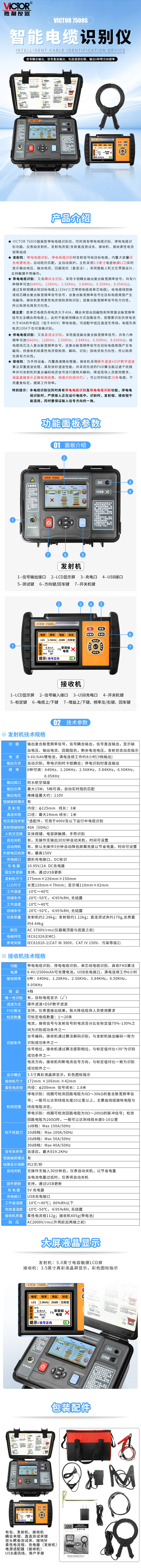 VICTOR 7500S 智能型帶電電纜識別儀,又名電纜識別儀、多功能電纜識別儀、智能電纜識別儀,是為電力電纜工程師和電纜工解決電纜識別的技術問題而設計的。