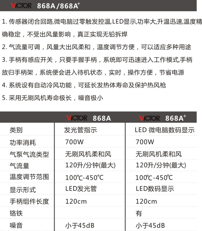 VICTOR 868A熱風(fēng)拆焊臺(tái)