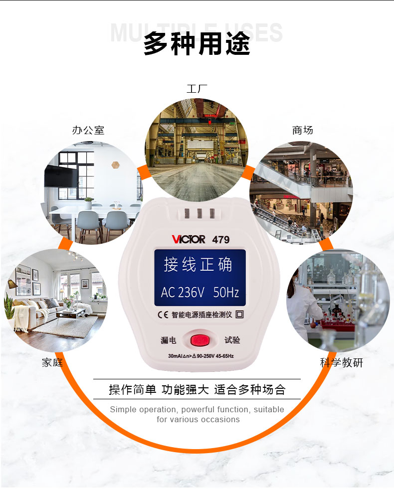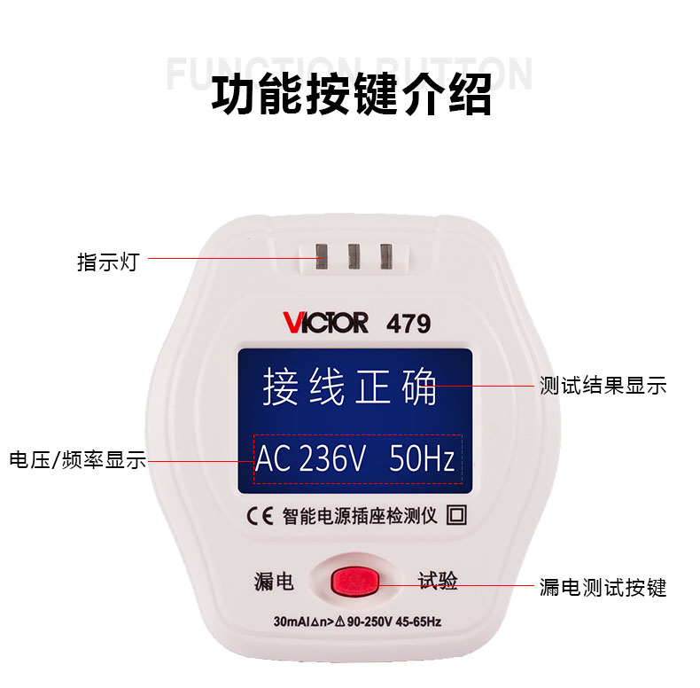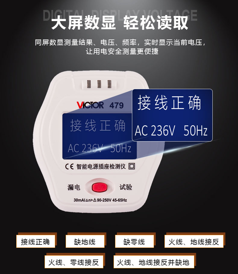 產(chǎn)品型號:VICTOR 479產(chǎn)品名稱:VICTOR 479插座測試儀