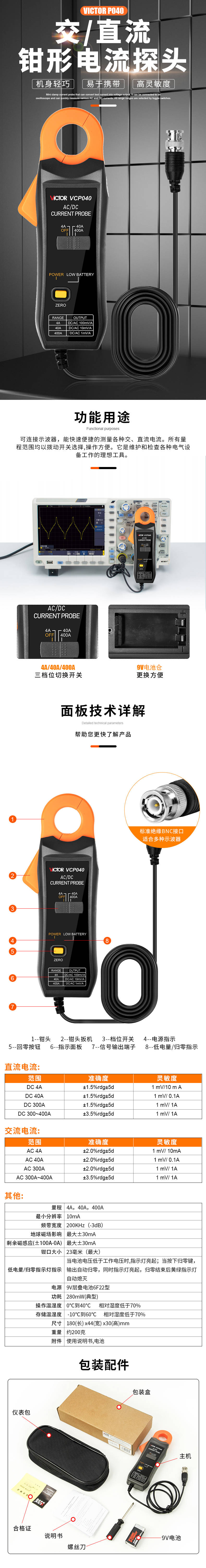 VICTOR VCP040示波器交直流鉗形電流探頭