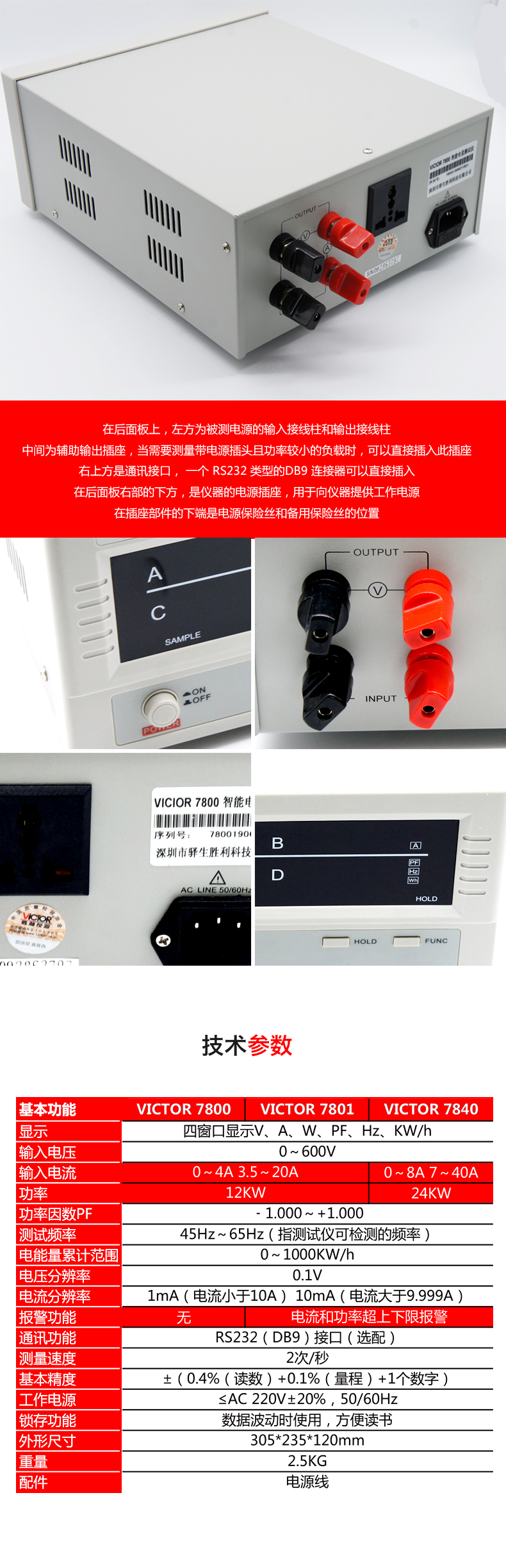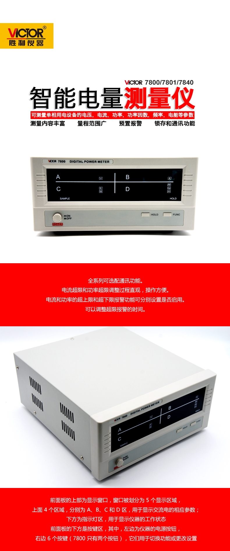 產(chǎn)品型號:VICTOR 7800 7801 7840操作方式:產(chǎn)品名稱:智能電量測量儀