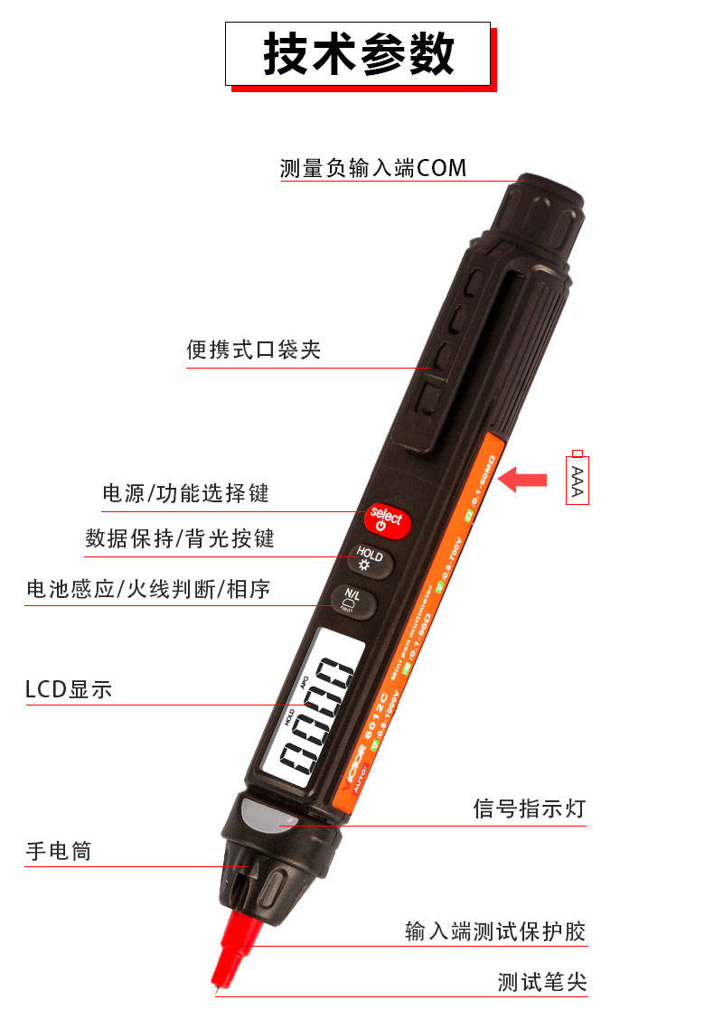 產(chǎn)品型號(hào):VICTOR 6212D產(chǎn)品名稱:筆式萬(wàn)用表