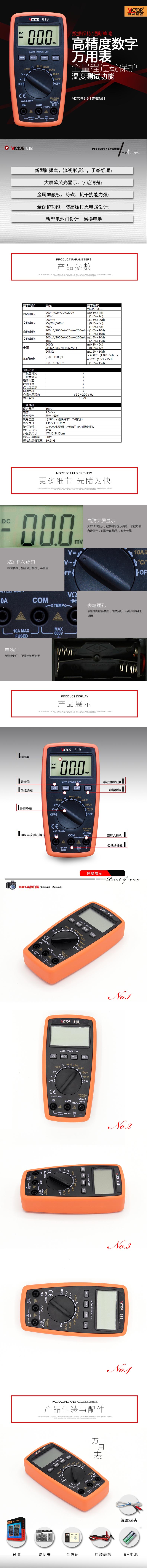 產(chǎn)品型號(hào):VICTOR 81B操作方式:自動(dòng)量程產(chǎn)品名稱(chēng):數(shù)字萬(wàn)用表VICTOR 81B顯示位數(shù):3 1 2位特點(diǎn):1、新型防震套,流線形設(shè)計(jì),手感舒適