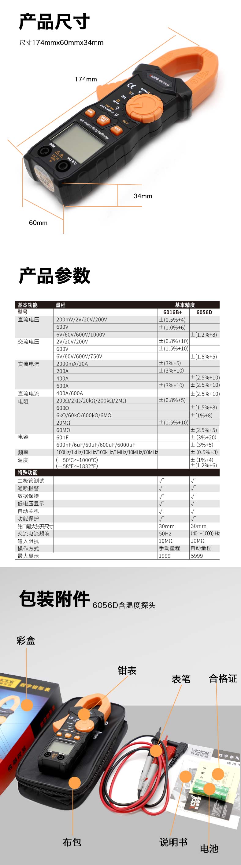 VICTOR 6016B+/6056D鉗形表