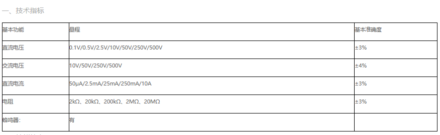 產(chǎn)品型號(hào):VICTOR 7244操作方式:手動(dòng)量程產(chǎn)品名稱:指針萬用表VICTOR 7244顯示位數(shù):3 1 2位一、技術(shù)指標(biāo)基本功能量程基本準(zhǔn)確度直流電