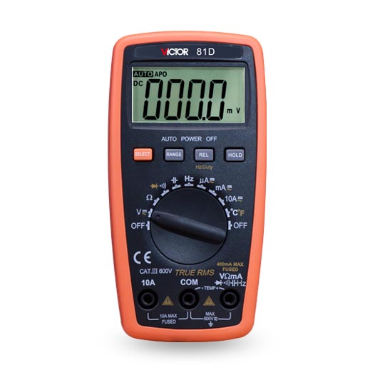 產(chǎn)品型號(hào):VICTOR 81D操作方式:自動(dòng)量程產(chǎn)品名稱:數(shù)字萬用表VICTOR 81D顯示位數(shù):3 3 4位特點(diǎn):1、新型防震套,流線形設(shè)計(jì),手感舒適