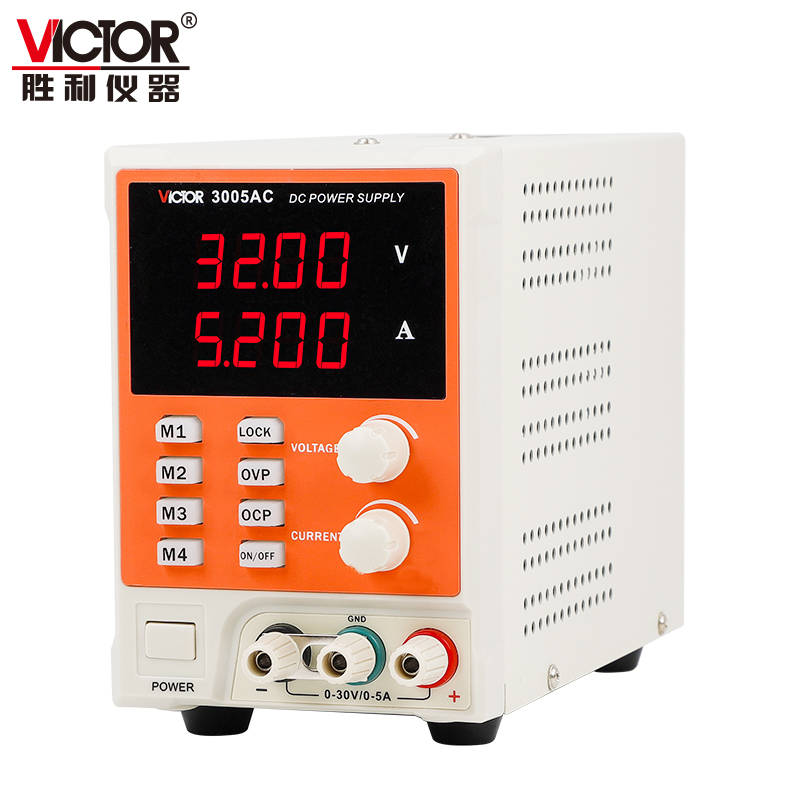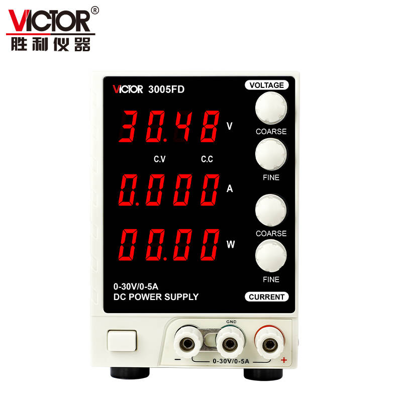 VICTOR 3005FD是一款高品質(zhì)、高穩(wěn)定性的線性直流穩(wěn)定電源,LED 四位電壓、電流、功率顯示,過(guò)載全保護(hù)功能,最小設(shè)定電流 1mA。極高的穩(wěn)定性、極強(qiáng)的可靠性是大專院校、及企業(yè)生產(chǎn)線、家電維修單位等理想的工具。
